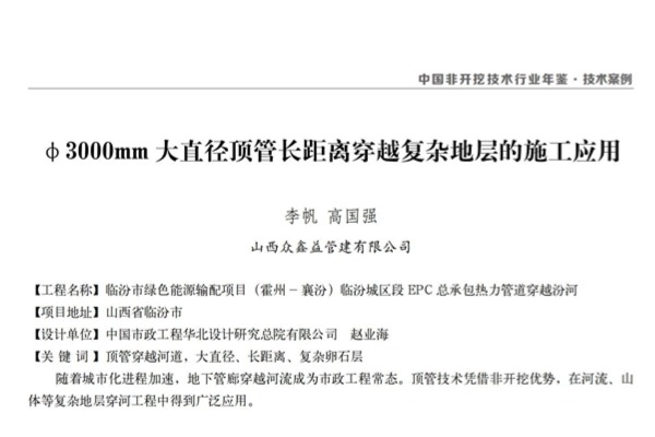 山西眾鑫益管建有限公司成立于2013年8月,注冊資金5000萬元人民幣。是一家主要致力于管道安裝、管道預(yù)埋,非開挖水平定向鉆進穿越施工,管道修復(fù)與更新、管道探測、管道定位,建筑工程機械與設(shè)備租賃的企業(yè)。
